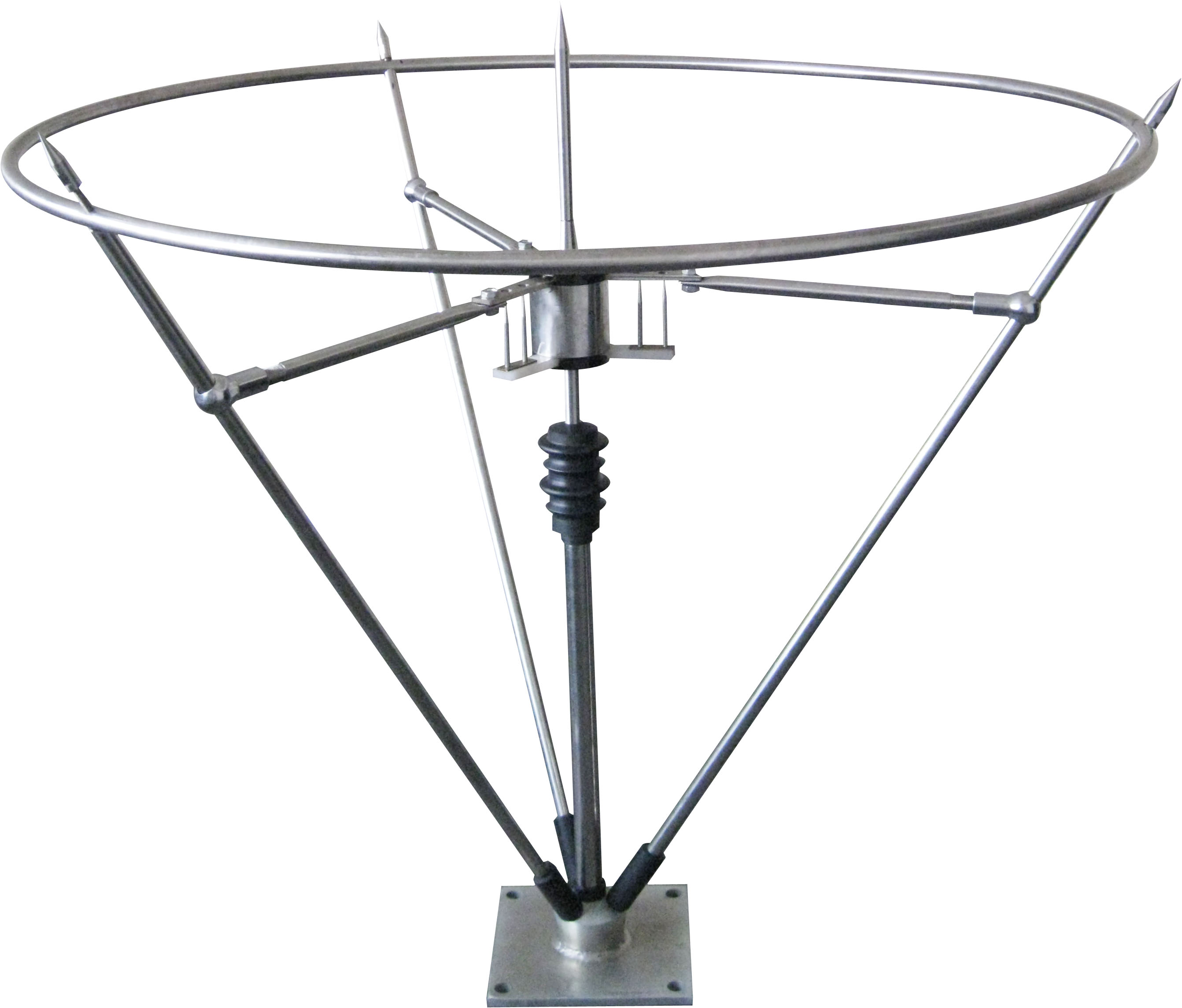 可控放電避雷針針頭要求可控放電均壓環水平,主放電針在鉛垂方向。不允許在避雷針及其支柱上懸掛電話線、廣播線、電視天線及電力架空線等。